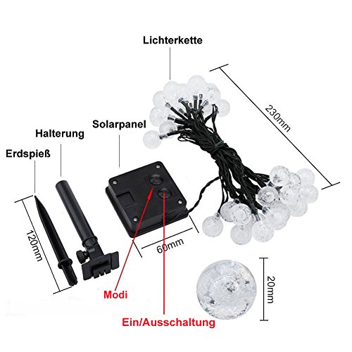-. Title : YIMIA Wasserdicht 30er LED Solar Lichterkette, 8 Leuchtmodi tragbare 6 Meter Außenlichterkette Garten Solar Led Beleuchtung Warmweiß/bunt Kugel für Party, Weihnachten, Garten, Balkon