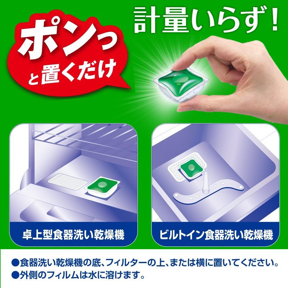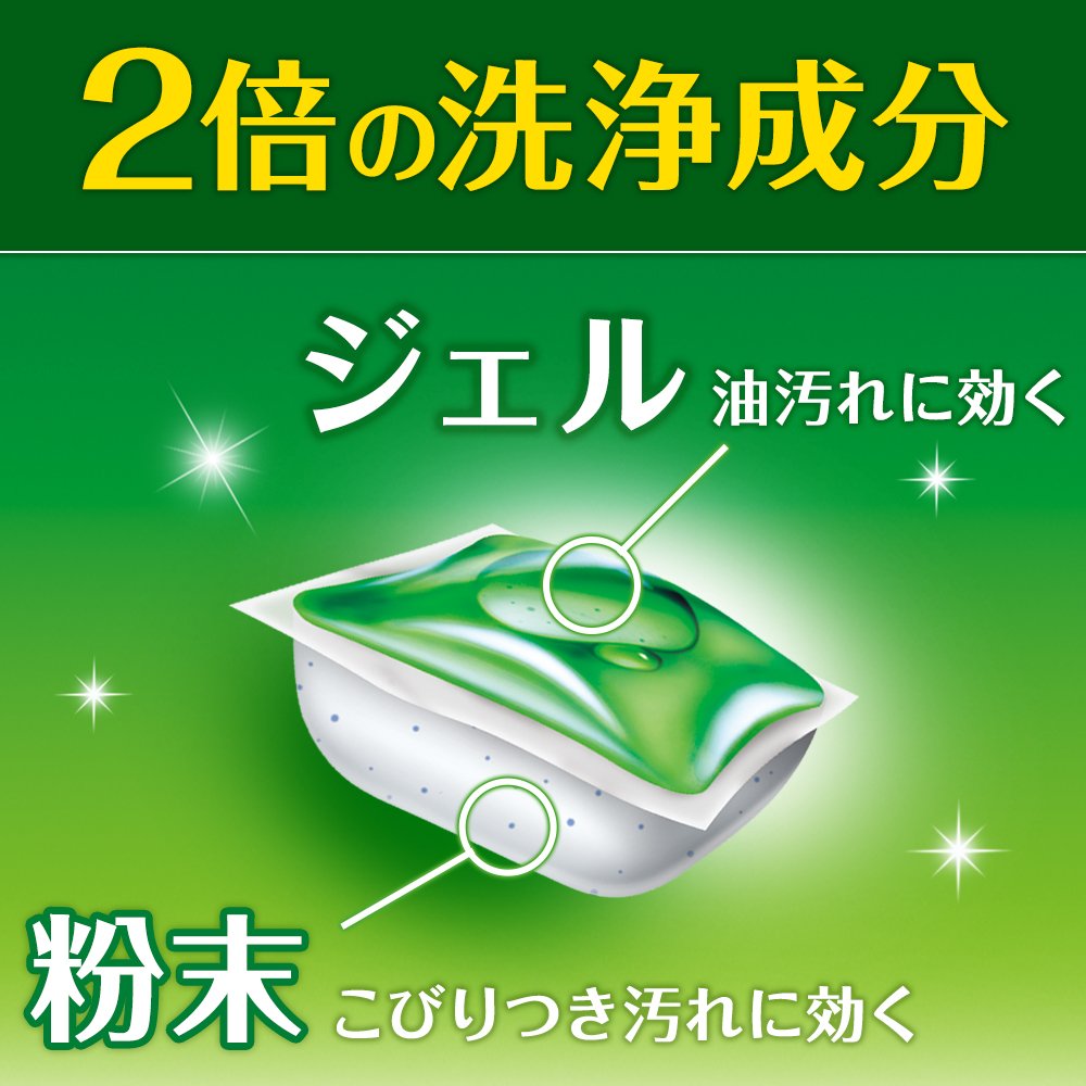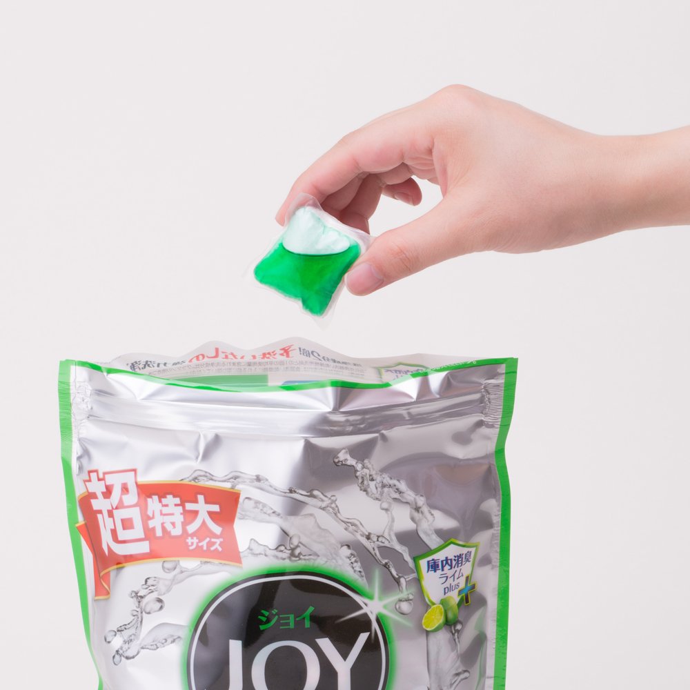 超特大サイズ 食洗機用洗剤ジョイジェルタブ ジェルと 粉末、 洗浄成分2倍。予洗いなしの強力洗浄* ポンっと入れるだけ、1粒で3つの効果、強力洗浄、庫内洗浄、除菌。 庫内消臭ライムplus 配合、庫内までスッキリ。除菌、 消臭、 輝き。 酵素配合 食器洗い乾燥機専用 (洗碗机) しつこい油汚れに浸透して落とすジェルxこびりつき汚れを分解してピカピカにする粉末、ガンコな汚れもしっかり落とす。 魚焼きグリルの油汚れ、カレーの色汚れ、ごはん粒や卵のこびりつき、庫内までピカピカ。 ニオイもすっきり。 *当社他食器洗い乾燥機用洗剤との1回の平均使用量に含まれる洗浄成分比。グラタンの焼きつき、鍋の焦げつき、茶碗蒸し、口紅などの汚れは、食器洗い乾燥機に入れる前に取り除いてください。 * 各メーカー、全てのタイプの食器洗い乾燥機に使えます パナソニック、リンナイ、象印、三菱電機など