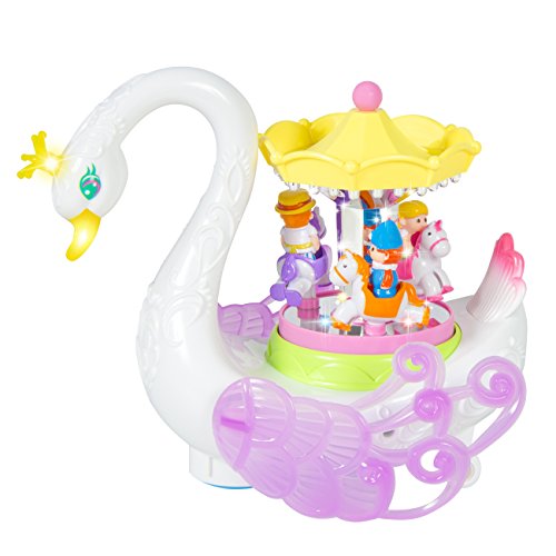 Elegant and fun, swan is constructed with durable plastic and dazzling mirror accents on the carousel