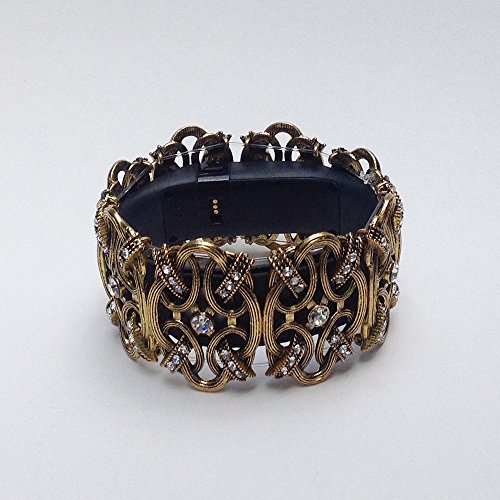 -. Feature : Dress up your FitBit Charge or Charge HR fitness tracker band with this stylish antique gold bracelet studded with diamond-like accents by Fitness Bitsy. Perfect for work, dates, and special occasions. Make every step count while looking your best. / Comes in Petite, Standard, and Grande sizes. Just measure your band while it's on and select the size that's perfect for you. See sizing details in the Product Description below. / Our full-circle bracelets cover activity bands and hold them in place so that they don't fall off. / Designed and handcrafted by Fitness Bitsy. Our jewelry is the perfect give for any active woman in your life. / Easy on, easy off durable stretch bracelet. Simply remove it for high intensity exercise or sleeping.