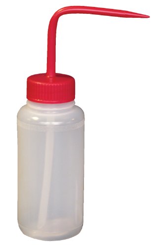 Vestil BTL-WW-8R Wide Mouth Low Density Polyethylene (LDPE) Round Squeeze Wash Bottle with Red Cap, 8 oz Capacity, Translucent