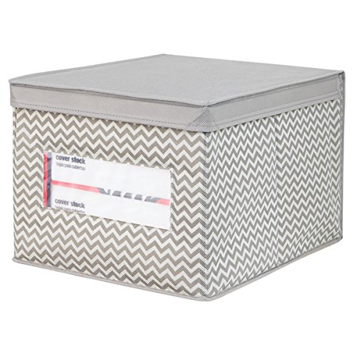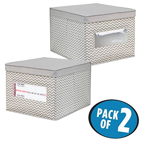 mDesign Fabric Office Supplies Storage Organizer Box for Binders, Paper, Notebooks - Pack of 2, Large, Taupe/Natural