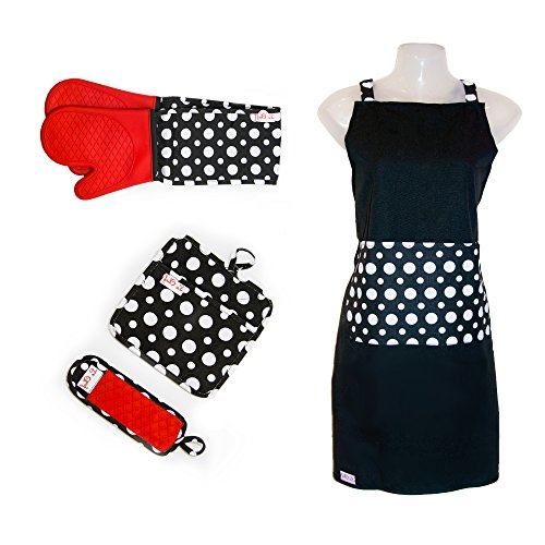 LCM Home Fashions, Inc. FA041A Le Chef 4Piece Dot Apron Set- Red Diamond,Red