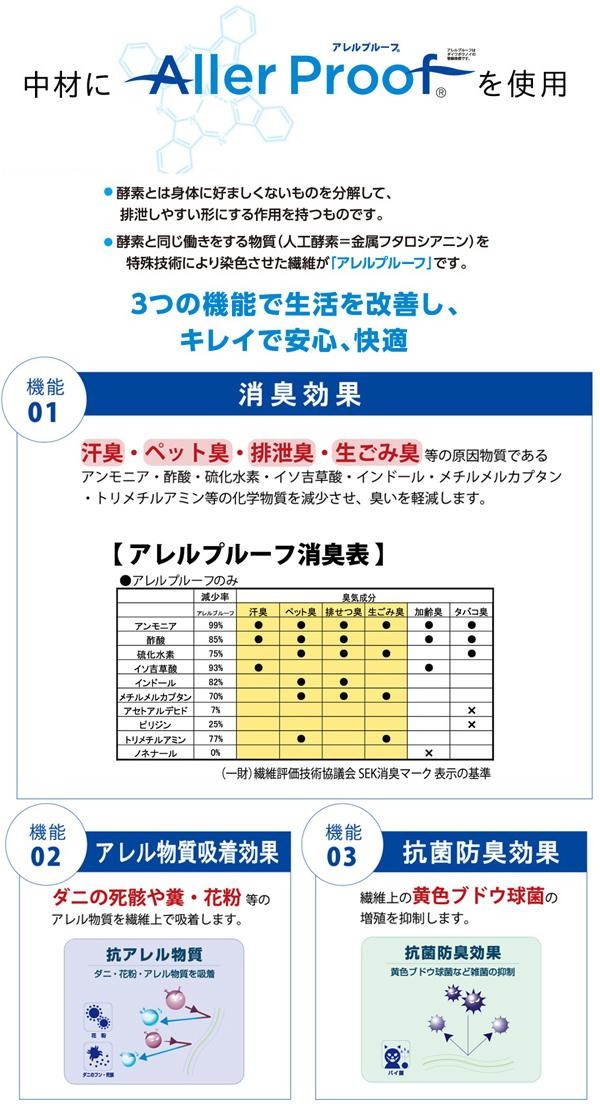 | 素材・材質 | 表地:ポリエステル100%(マイクロ短毛)、アレルプルーフ不織布 裏地:ポリエステル100%(フランネル) 中材:ポリエステル100% |