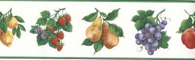 -. Title : Green White Fruit Wallpaper Border 30342 GB