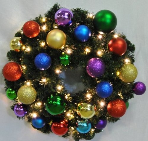 Queens of Christmas WL-GWSQ-04-ROYAL-LWW Pre-Lit LED Sequoia Wreath Decorated with "The Royal Ornament" Collection, 4', Warm White