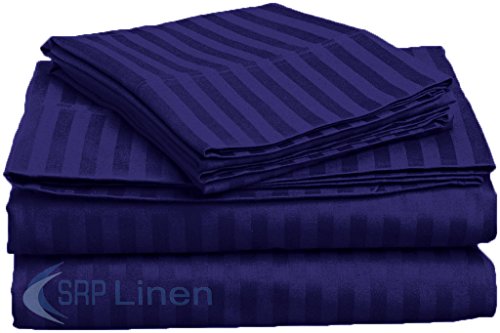 800 TC 100% Egyptian Cotton With Extra 21" Large Deep Sheet Set Queen Navy Blue Stripe 800 Thread's SRP LINEN