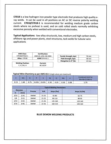 Blue Demon 7018 X 1/8" X 14" X 1LB Tube Low Hydrogen Carbon Steel Electrode