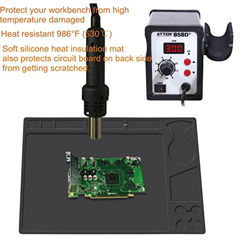SAUNICE silicone mat soldering /Heat Insulation Silicone Pad Electrical BGA Soldering Repair Station Maintenance Platform with Screw Location Mat (black-2pcs)