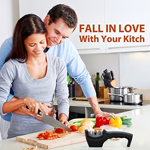 【EASY AND QUICK TO SHARPEN YOUR KNIVES】 :The Knife Sharpener is Easy grip handle and very easy and quick to sharpen your folding knives. Compact, easy to use, attractive and excellentdesign. The knife sharpner for Most knives , 3-Stage Diamond Coated Wheel System, Sharpens Dull Knives Quickly, Safe and Easy to Use.