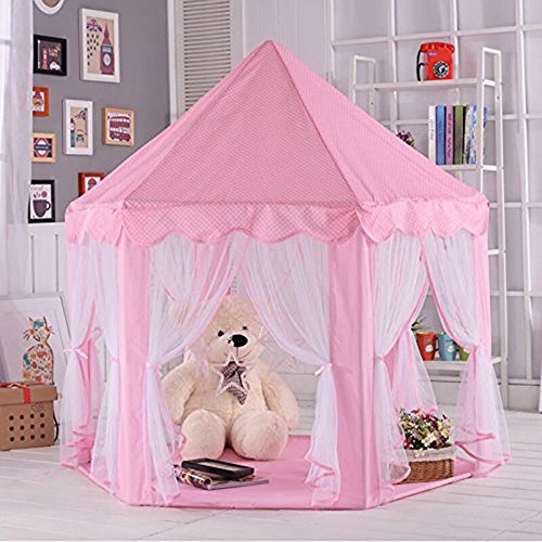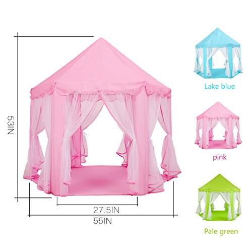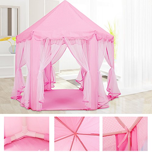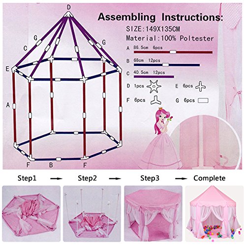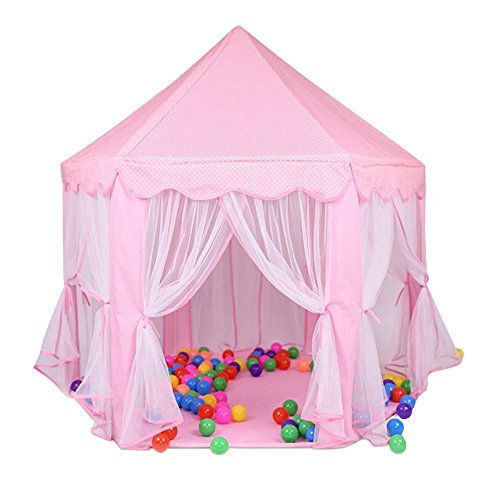 An adorable gift for your lovely girl: This cute princess castle play tent give your little girls a full imaginative princess experience.You little princess will tell you how much she love this tent.It has 6 roll up doors,make it easy to put ocean ball and toys inside.