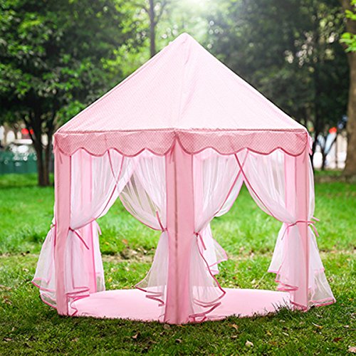 Are you trying to look for a best gift for your lovely kids?Anyshock beautiful princess tent is your first choice.This Tent is 55''(Diameter)*53''(H),prefect size space to fit in your kids'room,provide your kids a imaginative play space.Your kids will be have to have it.It is lightweight and portable,very convenient for you to take it for outdoor play.