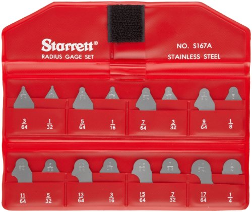 Starrett S167AZ Radius Gauge Set - Inch Without Holder, Satin Finish, 1/32 - 17/64" Range, 1/64" Increment, 16 Gauges