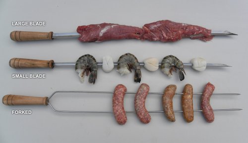 - 1 pack of 2 Forked Brazilian (Churrasco) Super Skewers (Wood Handle)