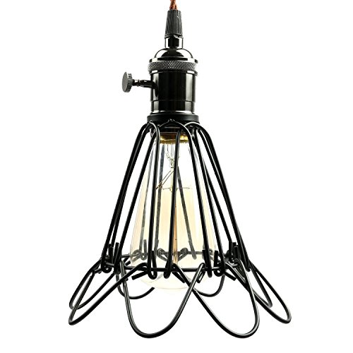 Pauwer Industrial Vintage Pendant Light Wire Cage Lamp Mini Plug In Cage Pendant Light with On/off Switch