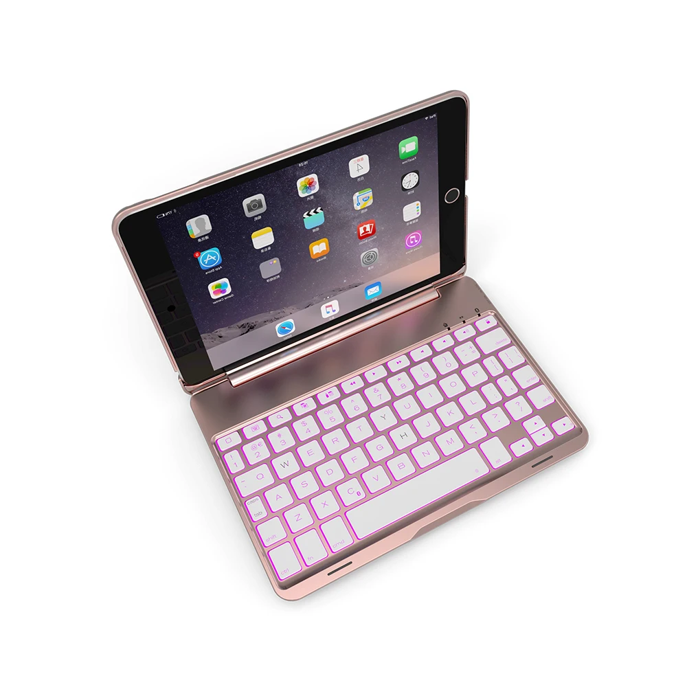 トップ品質スタイリッシュな超薄型ポータブルフリップフォリオアルミワイヤレスbluetoothキーボード付きハードプラスチック仕上げカバーボーゲンジッツオマンフロットシェル用アップルipadエア& ipad (2017) 9.7インチ)付き7-色ledバックライト、aluminlum bluetoothキーボードケース、を持つインテリジェントスイッチがオン/オフをキーボード一度オープンをカバー、自動的にスリープモードに入るいったん近い、シルバー/ゴールデン/ローズゴールド色のためのあなたの選択!!
