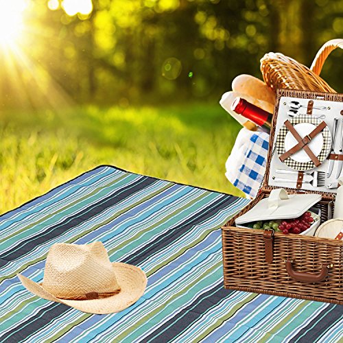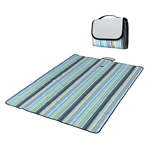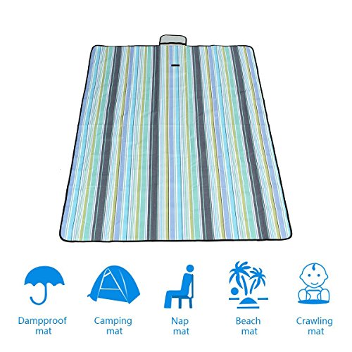Outdoor Picnic Blanket , LOPEZ Multi-purpose Portable Beach Blanket&Mats,Folding Picnic Rug,Baby Crawling Mat / Child Play Mat Waterproof & Sandproof Used for Camping Hiking Travel BBQ -Blue Stripe