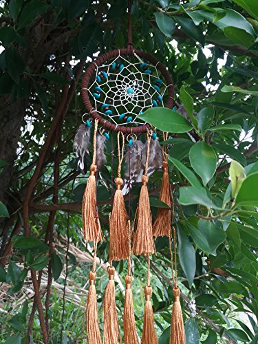 INSANEY Dream Catchers ~ Handmade Tassel Beaded Feather Native American Dreamcatcher Circular Net For Car Kids Bed Room Wall Hanging Decoration Decor Ornament Craft (Brown)