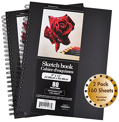 Premium Hardcover Sketch Book | 9"X12" Size, Side Wire, Total 160 Sheets Acid Free Paper | Pack of 2