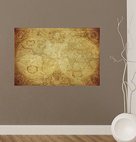 Wallmonkeys Wall Decals Grunge Wall Decals Vintage Map of the World 1630 Wall Mural - 12 inches x 8 inches - Peel and Stick Removable Graphic B00B4ZQPMM