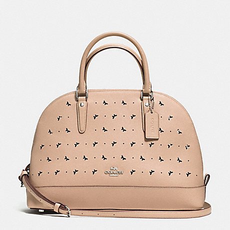 -. Title : SIERRA SATCHEL IN PERFORATED CROSSGRAIN LEATHER, F59344, BEECHWOOD