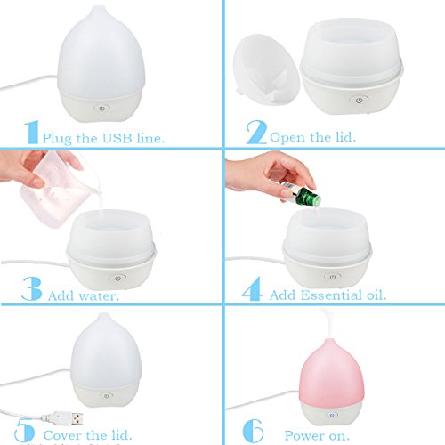 ♥It's easy to use,just add water and a few drops of your favorite essential oil. Advanced ultrasonic vaporizing diffusion technology quietly releases a soothing fragrant mist up to 6 hours.