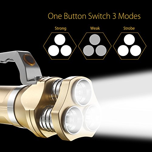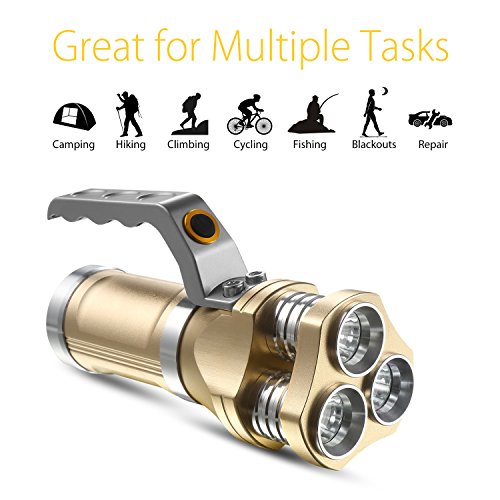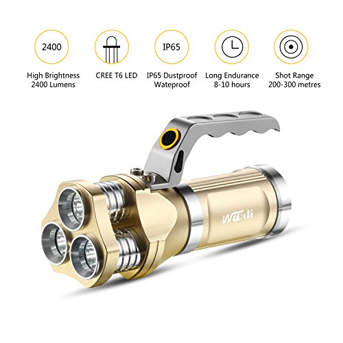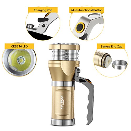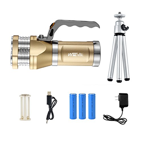 Rechargeable Flashlight Wuudi CREE LED Hunting Torch Tactical Flashlight Portable Lamp for Camping, Hiking, Fishing and Emergency (Gold)