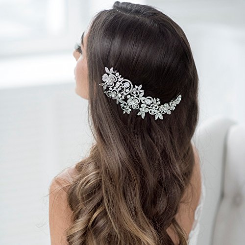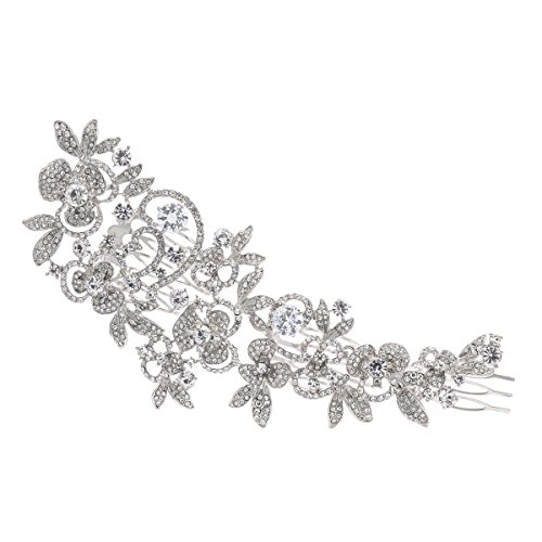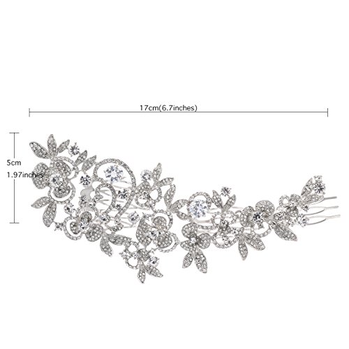 Sparkly Long Flower Hair Comb Rhinestone Hairpins Bridal Wedding Hair Accessories Jewelry Austrian Crystals Hair Clips FA5027 (Clear)