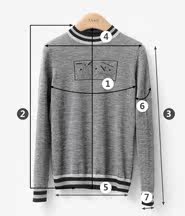 | 尺码 | ①胸围 | ②前衣长 | ③袖长 | ④肩宽 | ⑤下摆围 | ⑥袖臂围 | ⑦袖口围 | ||
