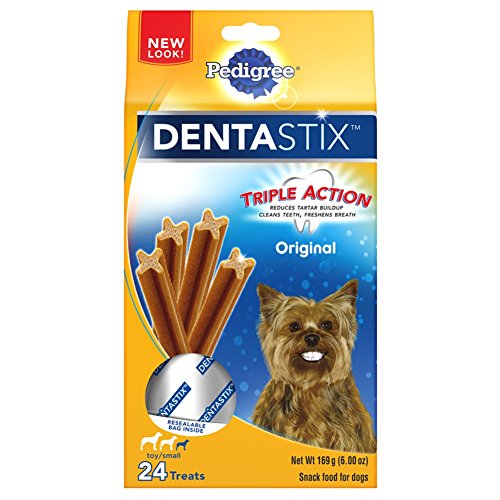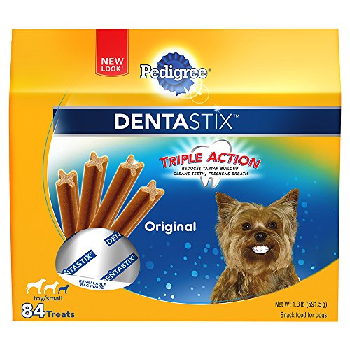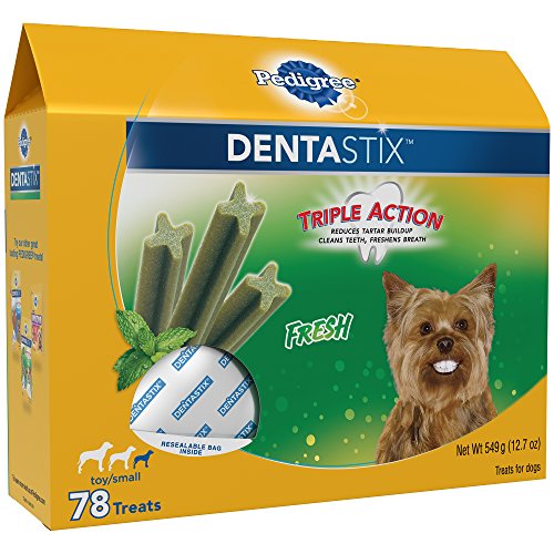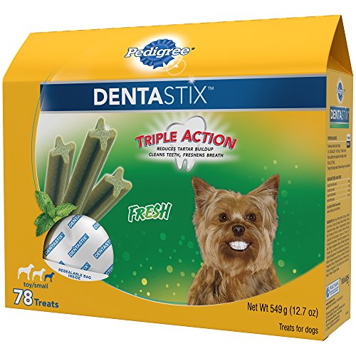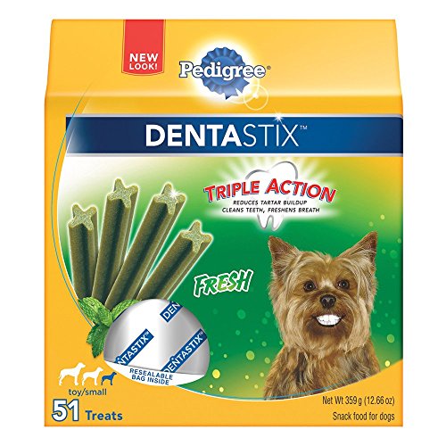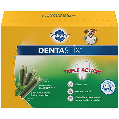 Refresh your dog's dental care routine with PEDIGREE DENTASTIX Fresh Treats for Toy/Small Dogs. These mint-flavor dog dental chews have a special chewy texture and provide daily oral care by helping to clean between teeth and down to the gumline. PEDIGREE DENTASTIX Oral Care Treats are also clinically proven to reduce plaque and tartar buildup. Best of all, the patented, X-shaped chews freshen breath while treating your dog, making them a delicious way to promote better oral health and dental care. PEDIGREE Oral Care Treats are dog snacks you can trust, and your dog will love.Feature