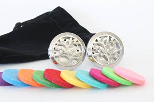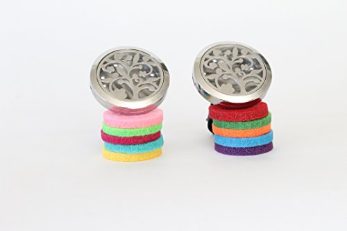 2 Pack Aromatherapy Essential Oil Car Diffuser with 10 Replacement Felt Pads — Stainless Steel Air Freshener Locket Car Diffuser Vent Clip