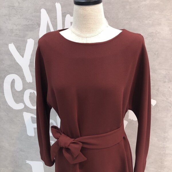 심플한 라운드형의 단아한 분위기를 연출하는 원피스로 허리리본 포인트와 뒷라인 절개선이 여성스러운 실루엣 연출을 도와주는 심플하여 더욱 고급진 원피스입니다