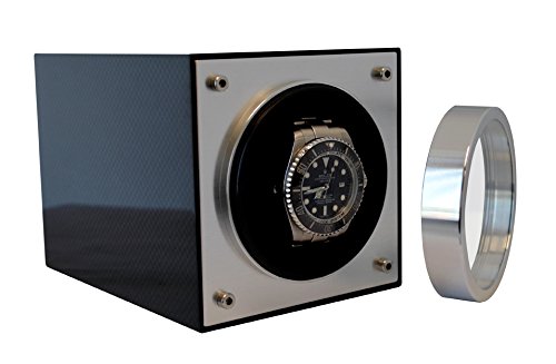 This stylish single winder is the newest design by Pangaea. The carbon fiber finish with metal front looks amazing. The protective cover will protect your watch from dust. Soft pillow will not scratch your watch and fit almost any size watch. You will not be disappointed with this winder. 0