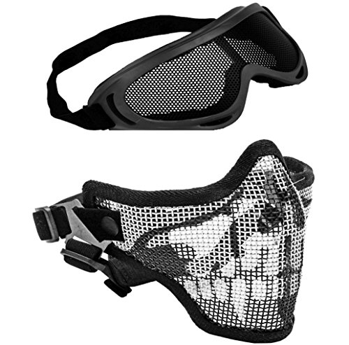 2 in 1 Adjustable Strike Steel Mesh Skull Mask + Anti Fog Wire Mesh Wide Vision Goggles, Tactical Shooting Airsoft BB Gun Protection