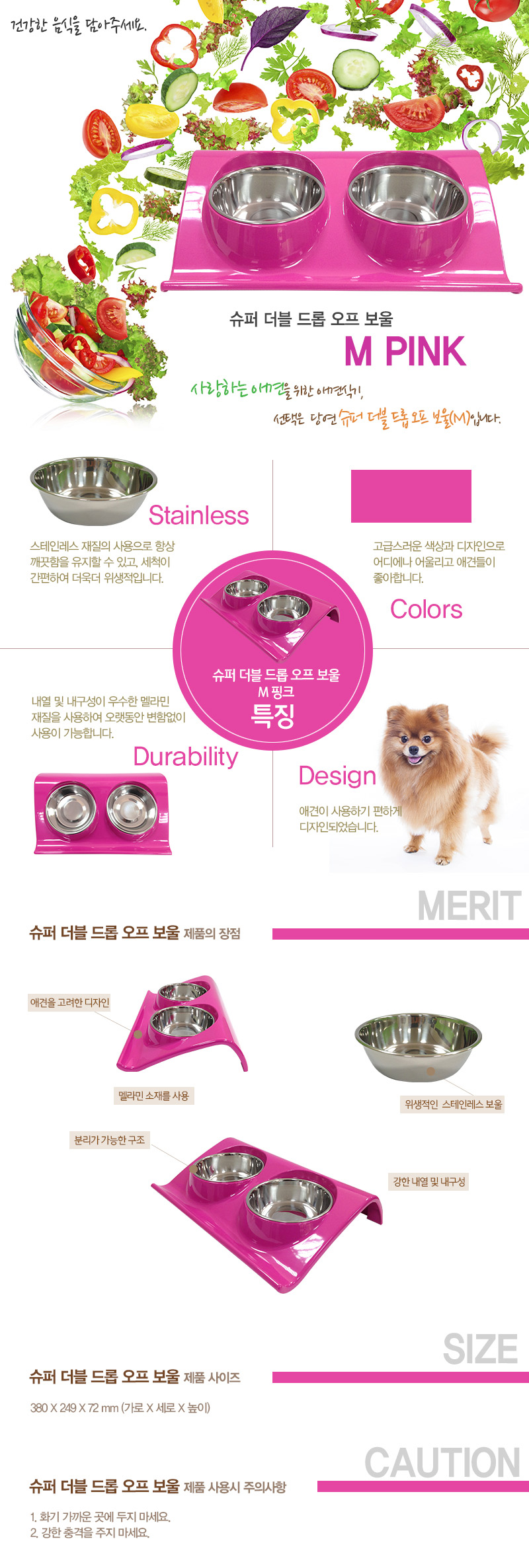 Supplies Double Drop-off Bowl M Pink Pink Cat Food Bowl Dog Dog Dog Super