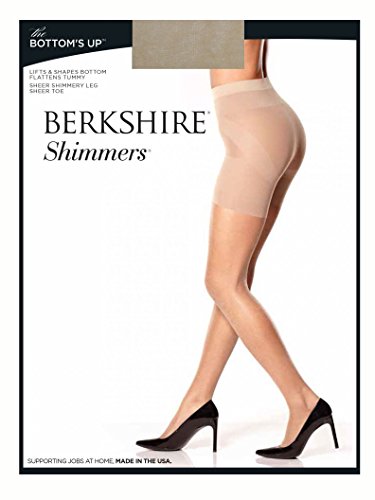 Sheer pantyhose with a butt boosting top and ultra-sheer shimmer leg