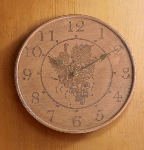 - Feature : Wooden board with grape carvings in the center and numbers on the periphery of the face; metal hands / Clock measures 11 7/8 Inch in diameter and 3/4 Inch thick / Provides a instant home decor for any occasion / Two identical clocks as pictured are securely packaged into one box for shipping / See all beautifully designed products with In Vino Veritas theme from Grasslands Road collection