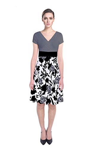 Title : CowCow Gray Floral 2 Short Sleeve Front Wrap Dress, Gray Floral - 2XL