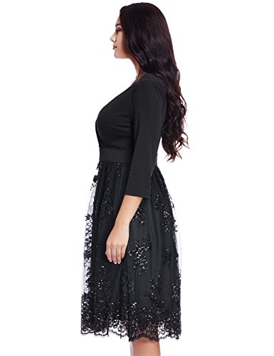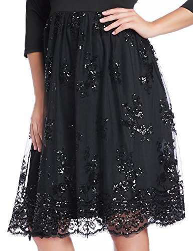 Comes with 3/4 sleeves and high waist belt to accentuate your curves. Skirt bottom has sequin mesh details to add elegance.