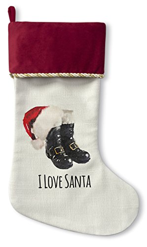 KAVKA Designs I Love Santa Christmas Stocking, (White/Black/Red) - TRADITIONS Collection, Size: 12.5x21 - (TELAVC1051CSTR)