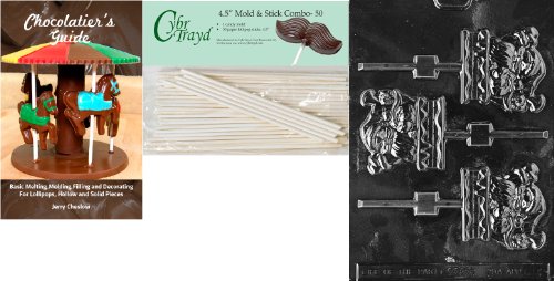 Cybrtrayd 45St50Bk-C092 'Waving Santa Lolly' Christmas Chocolate Candy Mold with 50 4.5-Inch Lollipop Sticks and Chocolatier's Guide