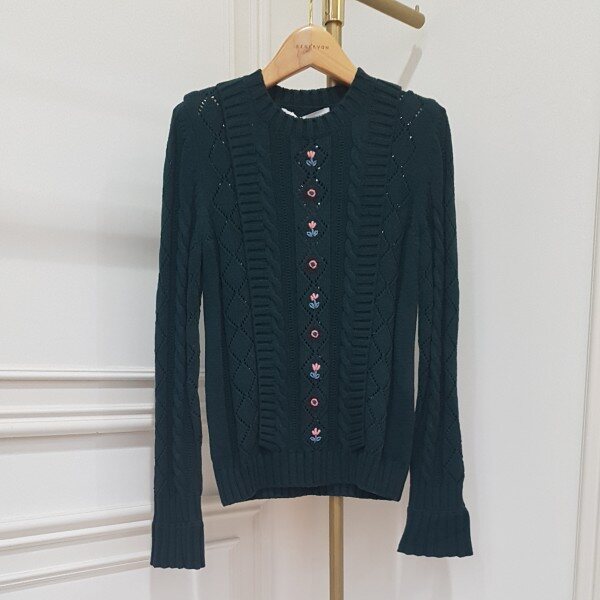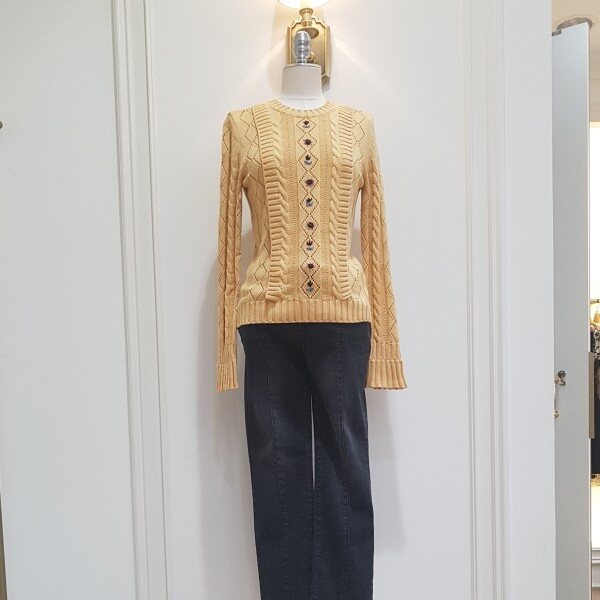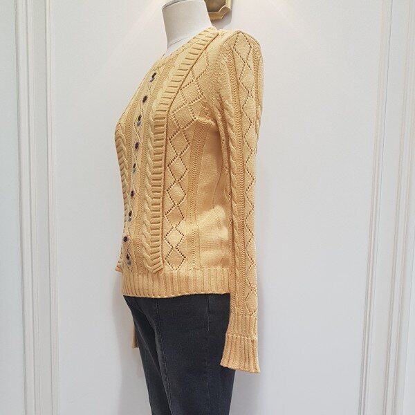 케이블 조직과 프릴장식이 여성스러움.