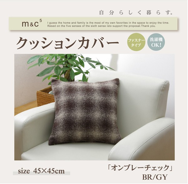 【商品名】ベーシック クッションカバー 『オンブレーチェック CカバーLS』 グレー 45×45cm