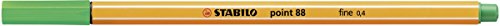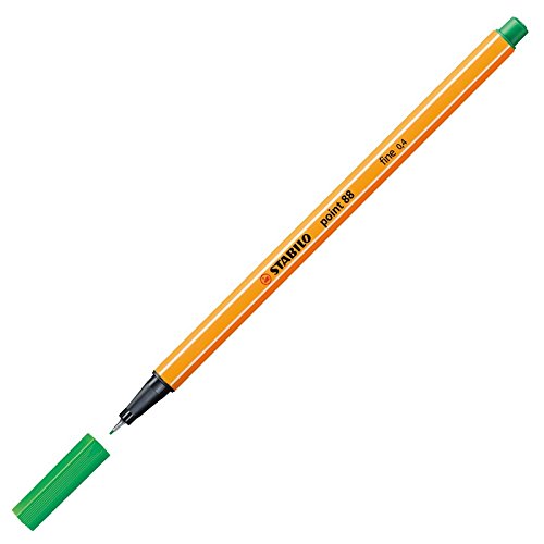 -. Binding : Office Product -. Brand : Stabilo -. Color : Dark Green -. EAN : 4006381217446 -. Feature : Europe's number one fineliner available in 30 brilliant colours including 5 neon coloursHexagonal striped design known all over the worldA metal encased tip makes it suitable for rulers and stencilsTotally smudge proof - great for left-handers and Ideal for writing drawing and sketchingLong cap off time with 0.4mm line width and water based ink makes it a popular choice for artists and children -. Label : STABILO -. Manufacturer : STABILO -. Model : 88/36 -. MPN : 88/36 -. PackageQuantity : 1 -. PartNumber : 88/36 -. ProductGroup : Office Product -. ProductTypeName : OFFICE_PRODUCTS -. Publisher : STABILO -. Studio : STABILO -. Title : Stabilo Point 88 Fine Liner Porous Point Pen - Green (Box of 10)