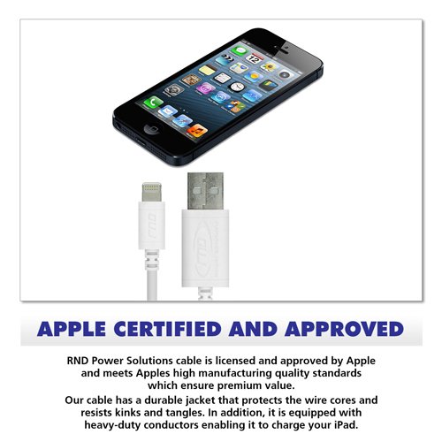 RND Apple Certified Lightning to Reversible USB 6FT Cable for iPhone (6/6 Plus/6S /6S Plus/5/5S/5C) iPad (Pro/Air/Mini) iPod and Siri Remote Data Sync and Charge 8-Pin Cable (6 Feet/1.8 M/White)