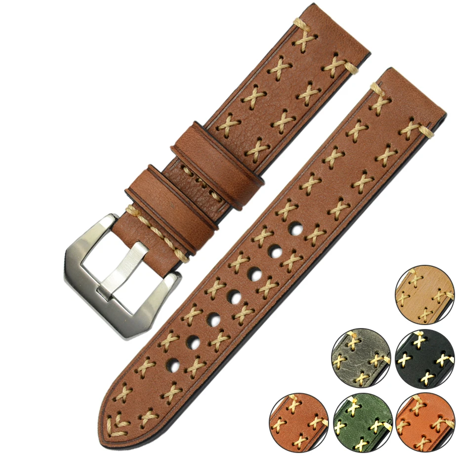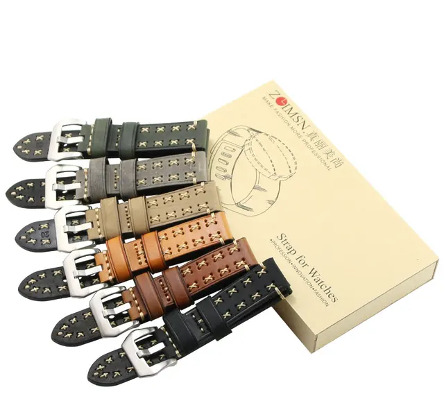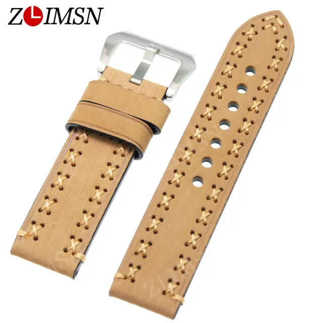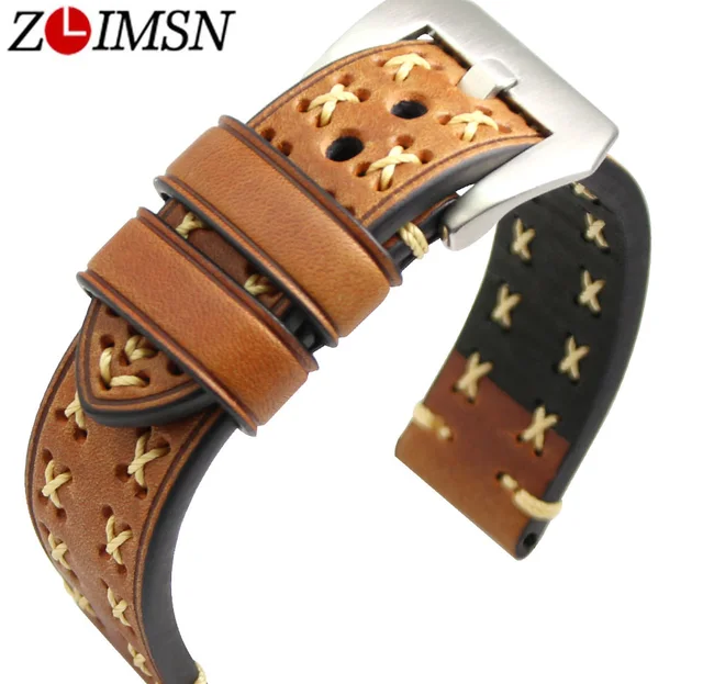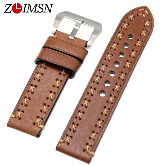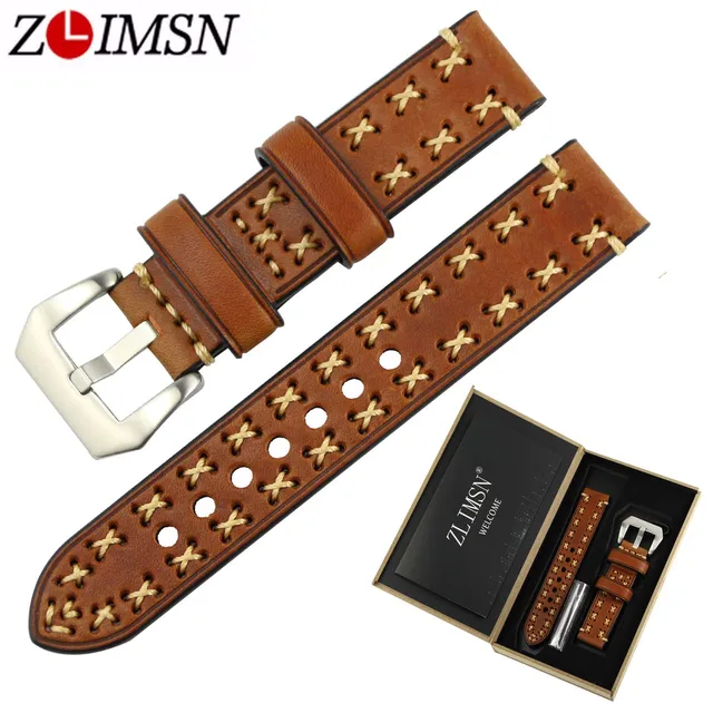 | [해외] ZLIMSN 높은 품질 정품 가죽 손목 교체 20 22 24 26 미리메터 블랙 브라운 그레이 스테인레스 스틸 버클 실버 닦았 |