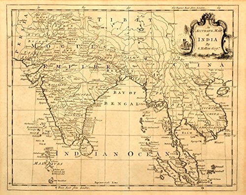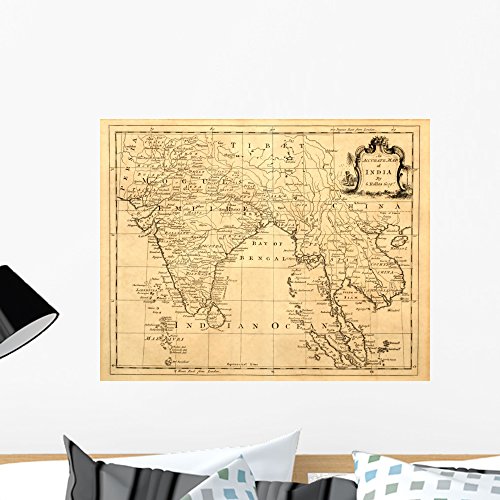 Vintage Map India and Wall Mural by Wallmonkeys Peel and Stick Graphic (24 in W x 19 in H) WM197375