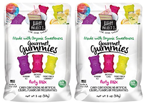 -. Feature : Project 7 Party Mix Gummy 2oz / Contains 3 Flavors - Rainbow Ice, Birthday Cake, Front Porch Lemonade / Made with organic sweeteners / Non-GMO, No artificial colors and flavors / 2oz each pack
