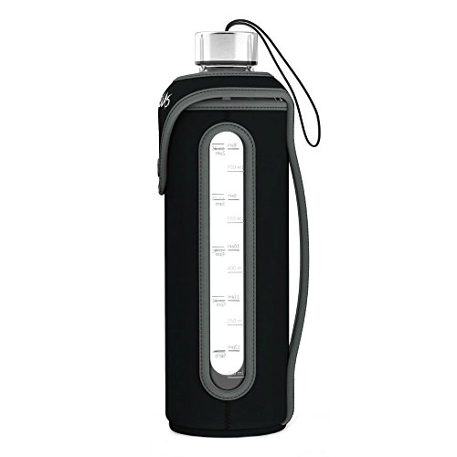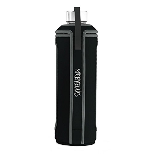 Studio : Xtremeglas Publisher : Xtremeglas Binding : Misc. Product Description Start your journey to healthier living with this all new Hydrate Maxx 32 ounce glass water bottle by Xtremeglas! This leak proof bottle is made with durable soda lime glass, same as what canning jars and Coke bottles are made with. The bottle features ounce and milliliter markings on one side and time markings on the other side to help keep your hydration on track. Simply fill up the bottle, and drink it down by noon. Then fill it again, and drink down by 6 pm and you have drank your recommended 64 oz of daily water intake. The TOP CARRY bottle comes with one (1) 18-8 stainless steel screw on lid (no carry strap) with removable silicone o-ring washer inside and Xtremeglas logo printed on it. The SIDE CARRY bottle comes with (2) 18-8 stainless steel screw on lids with removable silicone o-ring washers inside. One lid features a new wider black carry strap that is more comfortable to carry and leaves you confident your bottle will not drop. The other lid has no strap with our Xtremeglas logo. It's your choice which lid you prefer to use! Our customers have grown to love the Xtremeglas line of glass water bottles. They simply love the craftsmanship of the glass and the attractive design. These are great for any occasion and they make great gifts too! Pick yours up today and get on the road to a healthier lifestyle by drinking more water with Xtremeglas! While this bottle is very durable, it is made from glass, and can still be broken. Please handle with care! Click the ADD TO CART button to get your bottle now! **Product ships in genuine Xtremeglas packaging** 0