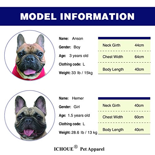 -. Feature : iChoue products are exclusively designed for French Bulldog, English Bulldog, American Bully Pitbull and Corgi. / Wider shoulder and thinker chest style, special designed for big muscle and active dogs. / Unique zipper inner cotton gasket design that prevents zipper stuck dog hairs. / 95% cotton, 5% polyester, warm, soft, comfy and durable. / Measurements--Small: Back 11 inch, Chest 20.5 inch, Neck 14 inch; Medium: Back 12 inch, Chest 22.8 inch, Neck 15.7 inch; Large: Back 13.8 inch, Chest 25.2 inch, Neck 17.3 inch; X-Large: Back 15.7 inch, Chest 30.7 inch, Neck 22.8 inch; XX-Large: Back 16.5 inch, Chest 33.5 inch, Neck 24.5 inch;